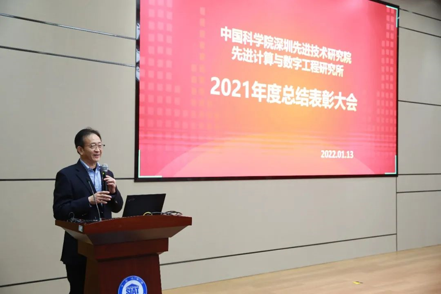 2021年,是先进计算与数字工程研究所(以下简称“数字所”)以沉稳坚实的脚步迈过的第13个年头,在这十余年里,数字所的优秀科研工作者们不忘初心,践行工研院使命,在科学研究、教育教学、成果转化等方面取得一系列成果,为数字所的发展付出不懈努力,做出卓越贡献。1月13日,数字所根据院内疫情防控要求,以线上线下相结合的方式举办2021年年度总结表彰大会,旨在表彰先进、传承作风。中国科学院深圳先进技术研究院院长樊建平、中科院深理工学术委员会主任赵伟、计算机科学与控制工程学院院长潘毅、计算生物与医学信息系主任唐金陵、讲席教授李建中、发展处处长毕亚雷、学生事务处处长李明、科研处副处长谭乐、人资处副处长丁鹏、数字所所长李烨及各中心获奖代表出席,大会由数字所副所长陈劲松主持。